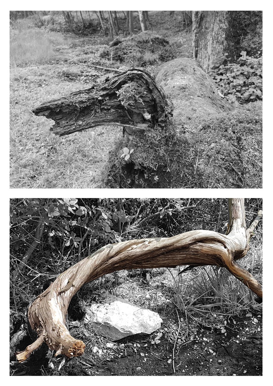 In meiner Fotoserie „Zeitzeugen – Spuren der Zeit“ betrachte ich die Natur als lebendige Chronik. Meine Fotografien von gewachsenen Holzformen und Naturskulpturen, entdeckt in Wäldern und Bergregionen, dokumentieren die Spuren der Zeit und die Veränderung natürlicher Formen. Die Bilder entstanden im Zeitraum 2019–2025. Im Rahmen der Offenen Ateliers von Kunst in Sendling 2025 wurden sie erstmals als Serie „Zeitzeugen“ präsentiert.