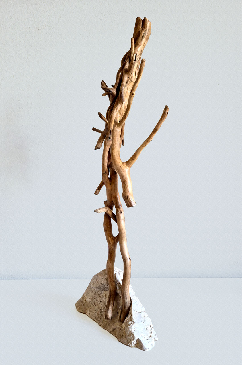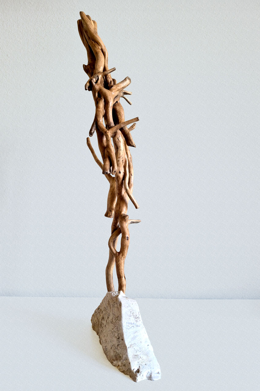 Die Skulptur gehört zur Serie Netzwerk und lädt dazu ein, Verbindungen, Zusammenhalt und das unsichtbare Geflecht von Beziehungen in Natur und Gesellschaft zu entdecken.
